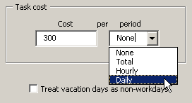 Under the 'Workdays and Cost' tab we can set the cost and units (ie. is the cost for the entire task, per hour or day).