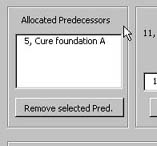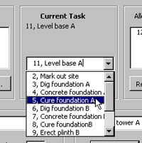 Now select the 'Set task dependencies' to bring up the main dependency dialog. ProjeX uses 'pointers' to keep track of tasks in each project. The first time you open up the dependencies dialog a new column is added to the ProjeX sheet and each task is assigned a unique number (pointer). This number must not be changed by the user - the project will be corrupted! To identify the tasks in the project, each of them is prefixed by this pointer in the dialog.