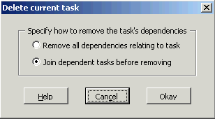 We can either remove the task and break all dependencies that relate to it or join the dependencies of tasks that it is dependent on and are dependent on it before it is removed. |