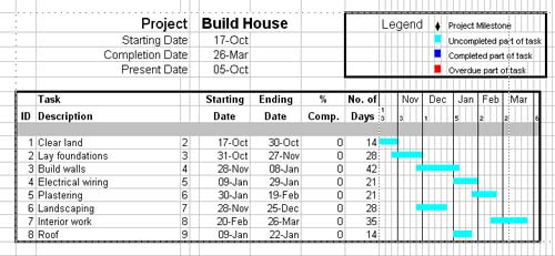 [ WAA Home | ProjeX Home | Download ProjeX | Help using ProjeX | ProjeX FAQ | About WAA]Network Analysis (Critical analysis and PERT charts)Gantt charts (see ProjeX) are good visual aids to planning a project, easy to understand and update as a project develops.