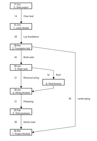 We need to find the earliest start date for each of the nodes. For the first first node (the start of the project) this is our start date. The next node is the earliest start of the previous node plus its duration and so on through the project to give :